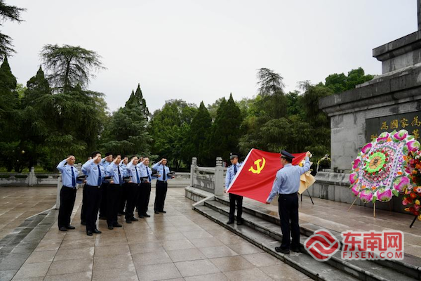 当天上午9时,祭扫仪式正式开始。全体人员在烈士纪念碑前整齐列队,民警代表迈着铿锵步伐护送党旗入场;小朋友们手持洁白小花行注目礼。伴随着雄壮的《中华人民共和国国歌》奏响,全体人员齐声高唱。国歌唱毕,全体人员低头默哀,向为国家独立、民族解放和人民幸福英勇献身的革命烈士,致以最沉痛的悼念与最崇高的敬意。闽西监狱民警代表与幼儿园园长敬献花篮后,民警和小朋友们依次献上白花,并深深鞠躬。