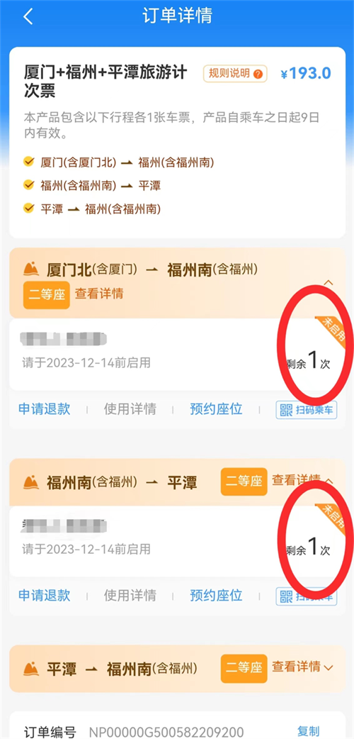 为了吸引更多的游客搭乘高铁旅游,2023年11月15日至12月15日,福建省内5A级景区将对购买上述3款铁路旅游计次票乘客免首道门票(具体详见附件)。同时,省文旅厅推动12306平台推出3款相应配套的“半自由行”产品,为旅客提供更加便捷丰富的出游选择,持续做热我省铁路旅游市场。 铁路部门提示,购买旅游计次票的注册用户,可为本人和本人账户下已通过身份信息及手机号码核验的乘车人购买。同一乘车人最多只能同时购买一个相同产品,不同产品可同时购买多个,但仅限乘车人本人使用,不能转让或共用。铁路畅行会员购买和使用旅游计次票后可累积乘车积分。如有相关疑问,可拨打铁路客服电话12306进行详细咨询。 附件:福建5A级景区推出针对购买铁路旅游计次票优惠措施 附件 福建5A级景区推出针对购买铁路旅游计次票优惠措施 2023年11月15日—12月15日,乘客购买“厦门+泉州+武夷山”“厦门+凯发k8+泰宁”“厦门+凯发k8+平潭”任意一款福建铁路旅游计次票,在产品启用后9天有效期内,凭在铁路12306平台旅游计次票订单启用信息(如下图)及本人身份证,到福建省内5A级旅游景区享受免首道门票优惠(每个景区仅限1次),最终解释权归相关景区所有,具体内容如下: 1.凯发k8市三坊七巷历史文化街区:无首道门票,对严复故居免门票。 2.厦门市鼓浪屿风景区:无首道门票,对皓月园免门票。 3.福建土楼(永定)景区:免福建土楼王子景区、福建土楼王景区首道门票。 福建土楼(南靖)景区:包含A线田螺坑、B线云水谣2条游览线路,其中A线田螺坑免首道门票。 4.泉州市清源山景区:免景区首道门票。 5.三明市泰宁风景旅游区:包括大金湖、尚书第、地质博物苑3个主要景点,大金湖、尚书第免景区首道门票,地质博物苑无首道门票。 6.莆田市湄洲岛妈祖文化旅游区:免景区首道门票。 7.南平市武夷山风景名胜区:免景区首道门票。 8.龙岩市古田旅游区:红色旅游景区,无门票。 9.宁德市屏南县白水洋·鸳鸯溪旅游区:免景区首道门票。 10.宁德市福鼎太姥山风景区:免景区首道门票。