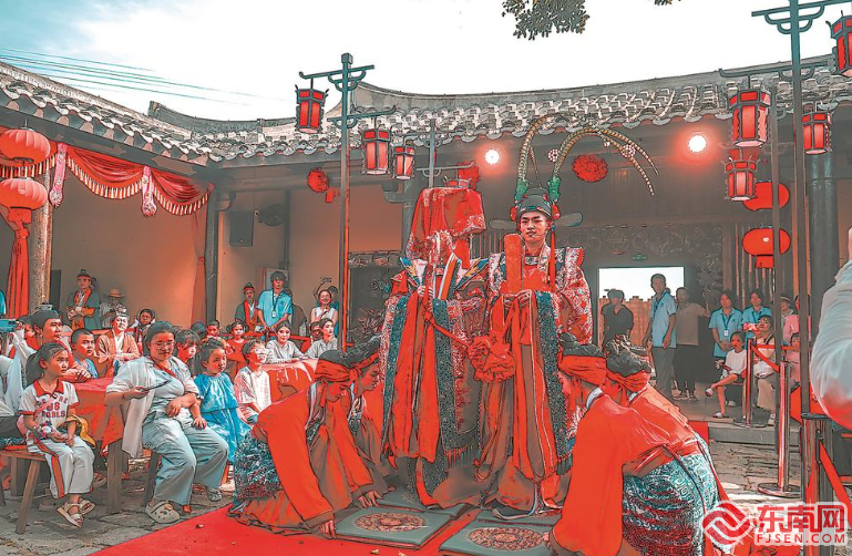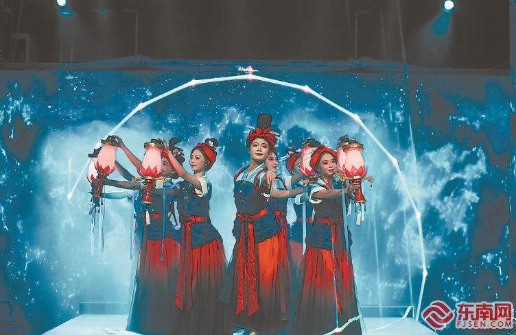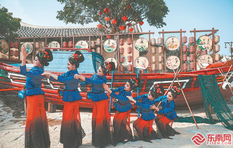 忠德祠里,一群仙袂飘飘的古装秀女款款登场,翩翩起舞。这是《海岛往事》的演出现场,它以湄洲岛渔村为背景,杂糅舞蹈、戏剧、杂技等表演方式,展现赶海人家不畏艰难、勇于拼搏的精神风貌。