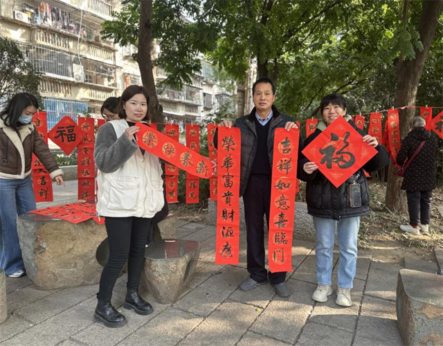 活动现场,红纸翻飞,墨香四溢。省文旅厅退休老干部和社区人才代表挥毫泼墨,为群众书写着一副副寓意吉祥的春联,希望在新的一年为群众带来好运和祝福。志愿者们还热情地向群众发放文明宣传资料,引导群众自觉接受护河爱水、移风易俗等文明行为,共筑文明新风尚。