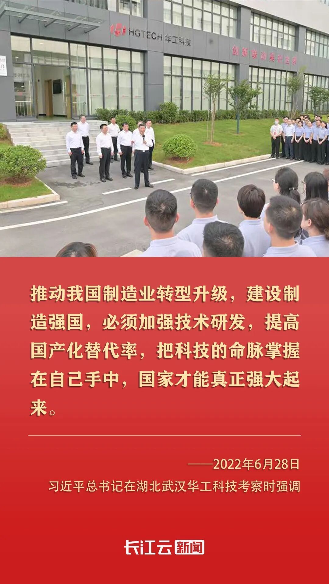 2022年6月,席大大总书记来到湖北武汉考察,第一站就来到光谷,来到华工科技。他指出,湖北武汉东湖新技术开发区在光电子信息产业领域独树一帜。要加强技术研发攻关,掌握更多具有自主知识产权的核心技术,不断延伸创新链、完善产业链,为推动我国光电子信息产业加快发展作出更大贡献。