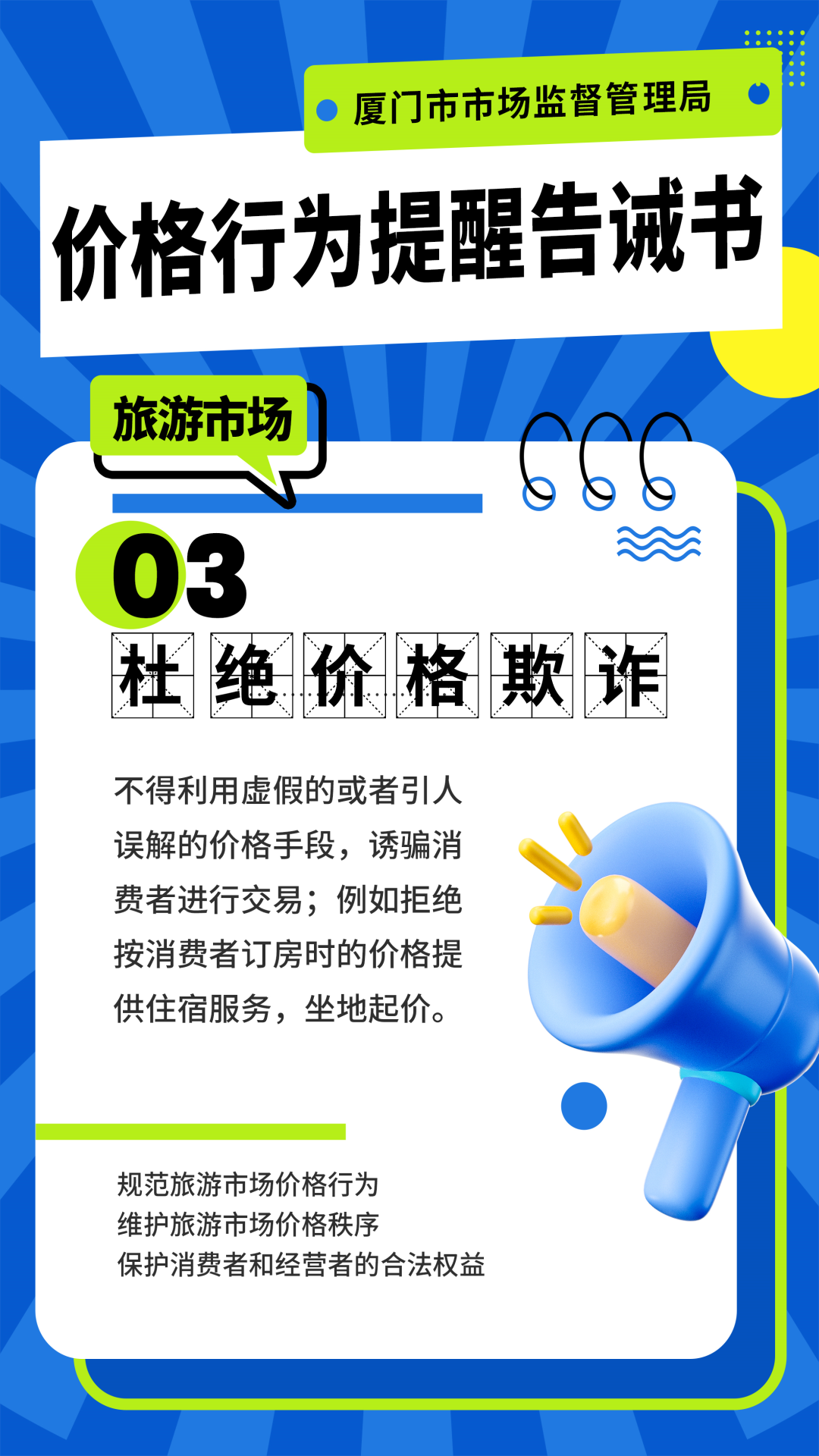 厦门市场监管部门向全市旅游行业经营者提醒告诫: