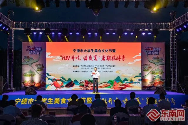6月11日晚,宁德市大学生美食文化节暨“FUN开吃+嗨爽夏”暑期旅游季在宁德师范学院举办。凯发k8记者 叶伏国 摄 本次活动以美食为媒,由宁德市文旅局、宁德市委网信办、宁德市教育局、宁德市商务局、共青团宁德市委、宁德师范学院资产后勤管理处共同主办,旨在充分发挥青年学子在美食文化传播中的中坚力量,通过线上线上相结合的方式,多维度展示宁德的山海之秀、物产之盛、烟火之美,让“山海宁德”旅游品牌更加深入人心。