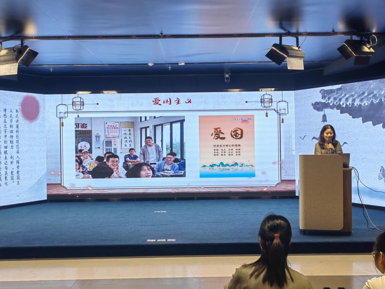 讲座中,郑晓勤老师以其深厚的文学底蕴和独特的教学视角引领大家深入探索了爱国主义文学的独特魅力,并结合丰富的案例和视频资料,清晰准确地指出表达爱国情怀的文章撰写过程中的痛点与难点。讲座内容贴近实际、注重实践,赢得了观众阵阵掌声。