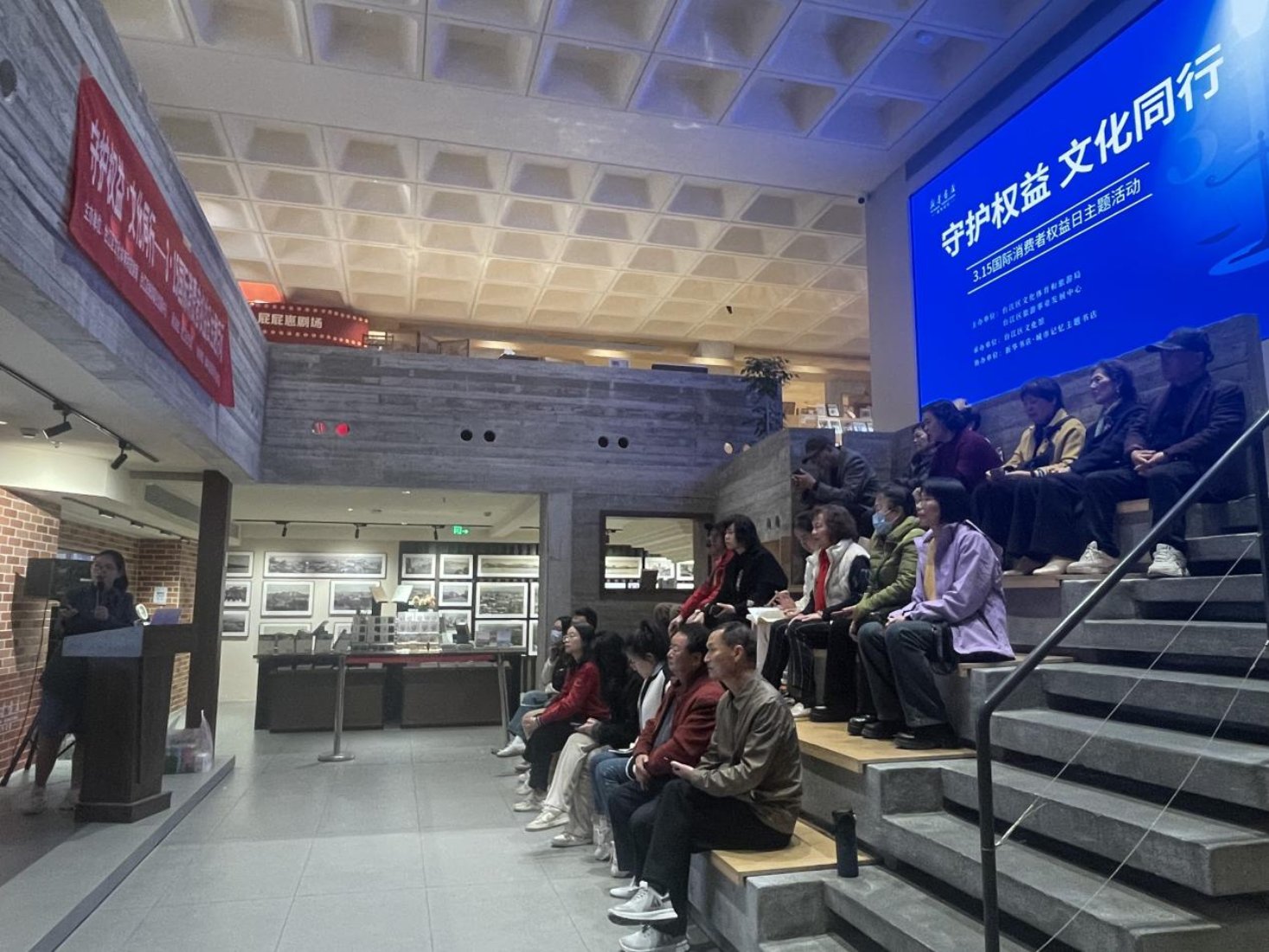 互动问答强化普法成效 在有奖竞答环节,围绕“七日无理由退货适用范围”、“霸王条款认定标准”等常见的消费陷阱问题,观众通过举手抢答展开激烈角逐,最终优胜者获赠定制维权主题马克杯,实现“学中有乐,乐中有获”。 本次活动通过沉浸式普法教育,将法律知识融入群众文化生活,切实提升消费者依法维权能力,营造了“学法、懂法、用法”的良好氛围。今后,城市记忆主题书店将持续发挥文化空间优势,进一步助力法治文化建设。 |