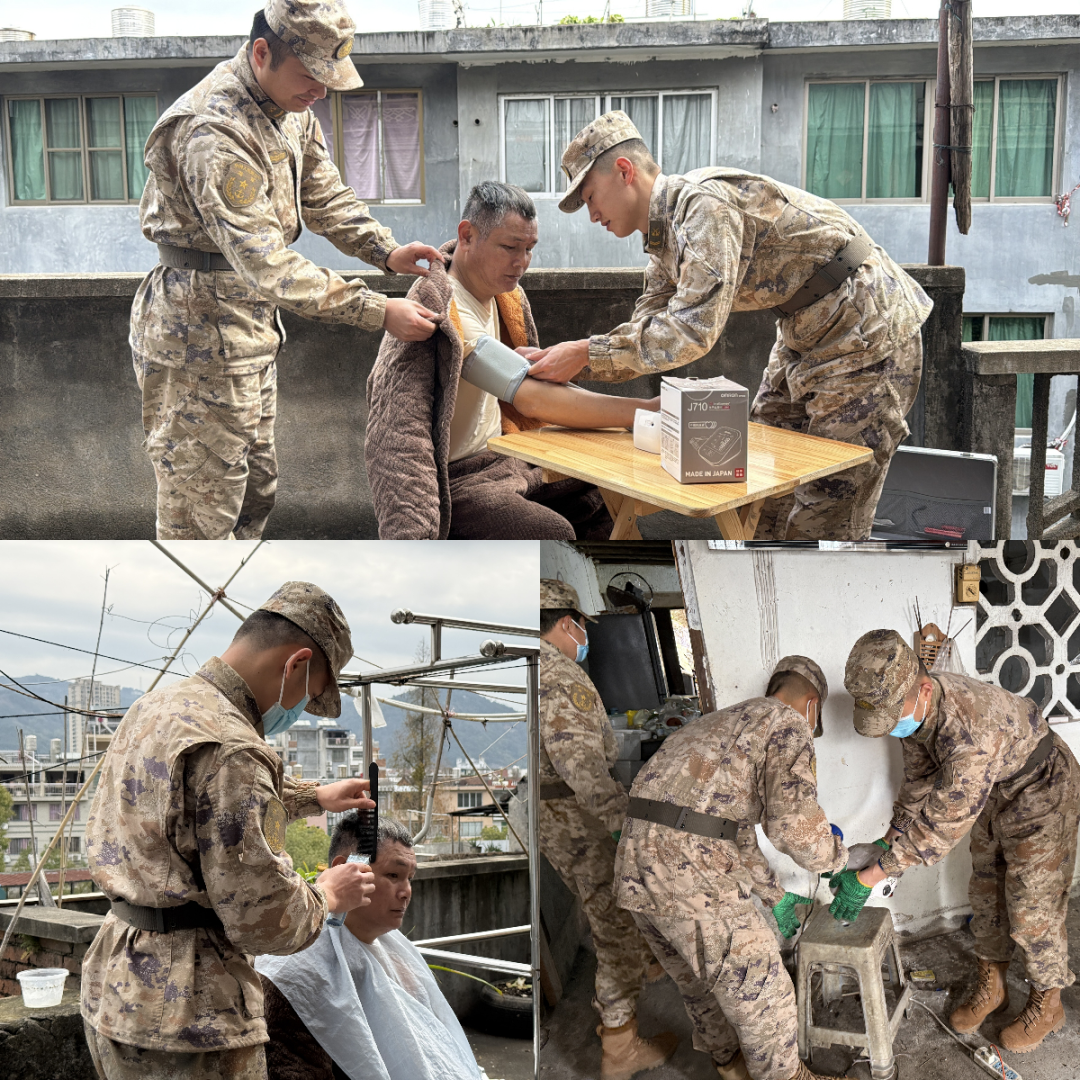 入户整理组在社区工作人员的陪同下,走进提前摸排确认的低保户家中。大家轻手轻脚、分工协作,一边细心为其测量血压、细致修剪头发,一边有条不紊地整理屋内杂物、清扫地面卫生,将原本杂乱的房间收拾得整洁有序。“真是太谢谢你们了,不仅帮我收拾屋子,还免费理发,太贴心了!”一句句真诚感谢,道出了军民同心、守望相助的温情暖意。